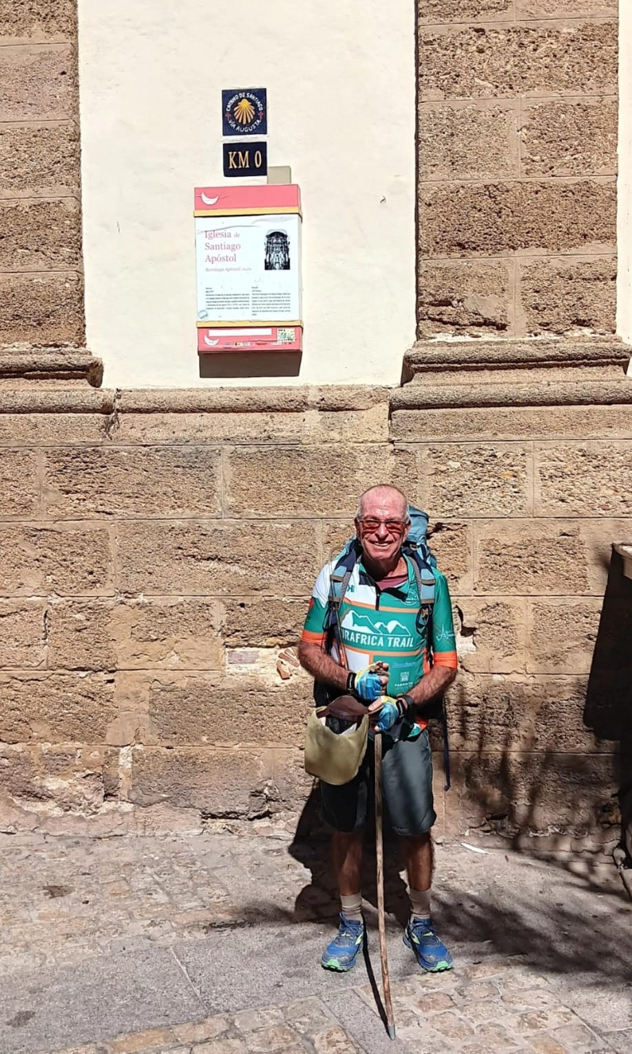 Juan Luis Alarcón Molina, peregrino de Algeciras de 75 años con 36 caminos en sus botas, ha salido de esta ciudad a finales de agosto hacia Santiago de Compostela. Ha recorrido la Vía del Estrecho, ha estado en Cádiz para iniciar la Vía Augusta y ahora está caminando la Vía de la Plata por los puertos de Béjar (Salamanca). Nos envía estas fotos en los kilómetros cero de nuestros dos caminos provinciales: Plaza Alta de Algeciras e iglesia de Santiago de Cádiz. Le deseamos buen camino.