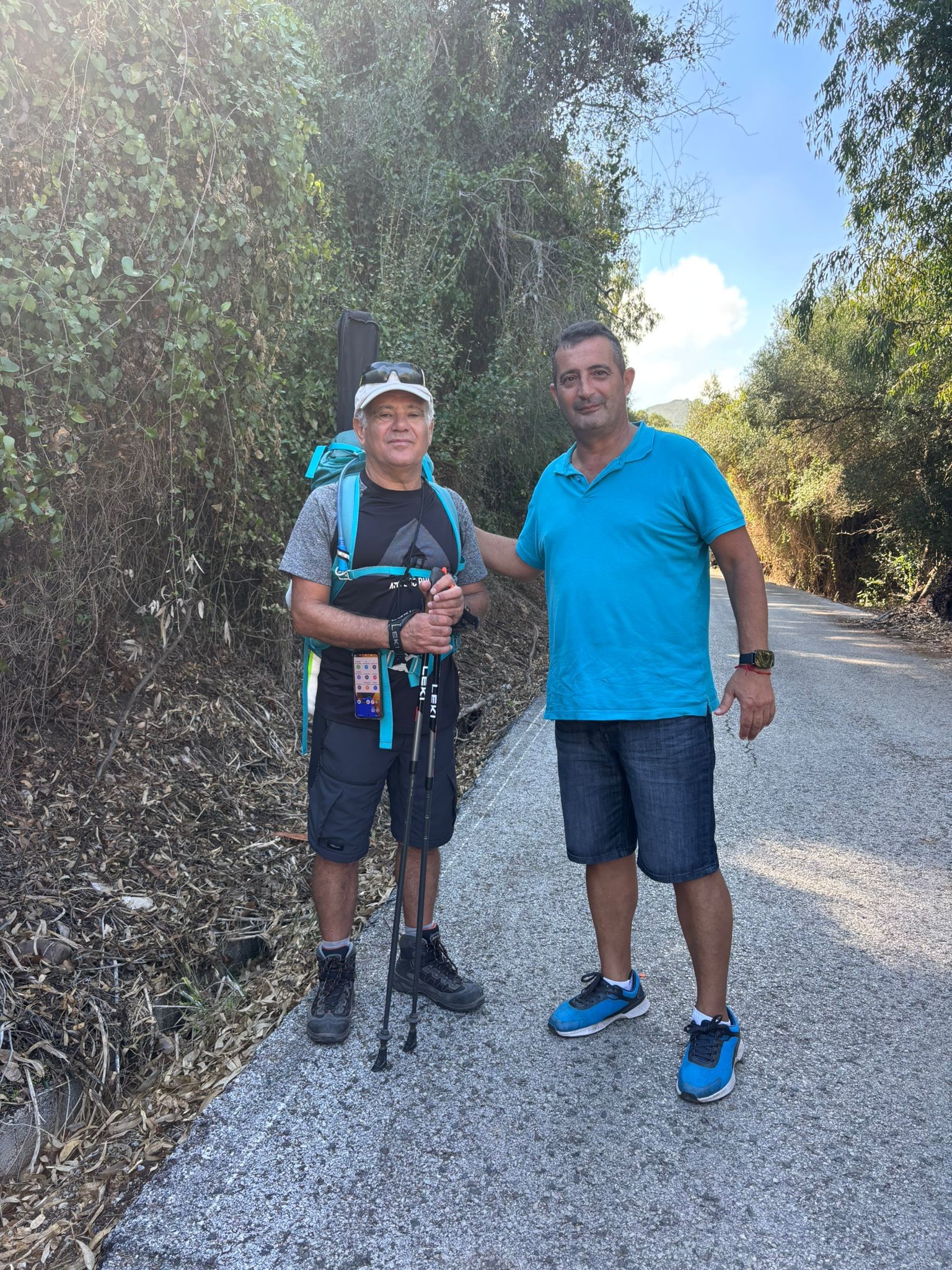 JOSÉ MEJÍA peregrino extremeño que después de terminar la Vía Serrana ha comenzado el 3 de octubre la Vía del Estrecho. Nuestro vocal del Campo de Gibraltar se lo encontró por Las Pantallas (etapa Algeciras-Tarifa) cuando estaba revisando la señalización por la zona. El otoño es el tiempo de estos caminos sureños. En la foto el peregrino (izqda) con nuestro vocal.
