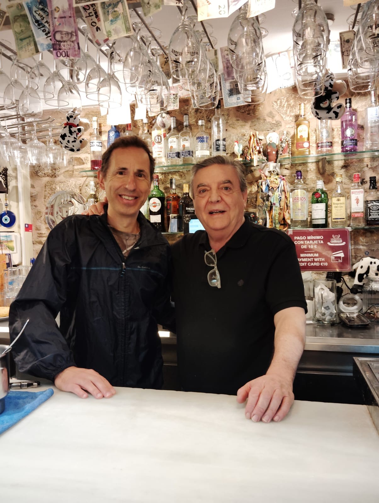 hace unos días. Nos envía estas fotos, una de ellas con Curro, del bar